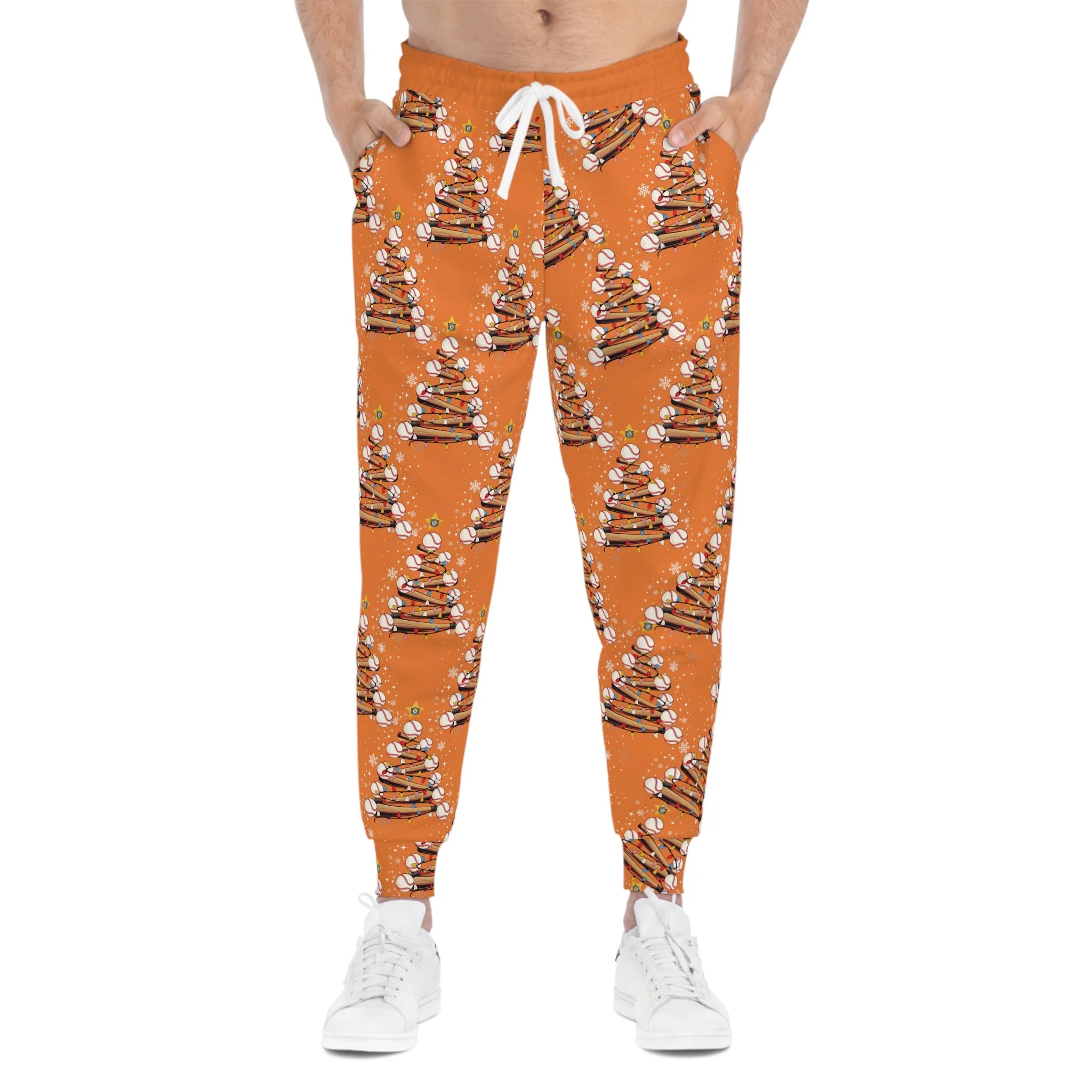 These athletic joggers bring cozy movement and bold seasonal style together. Cut from a soft, slightly stretchy polyester-spandex knit, they move with you whether you’re lounging, running errands, or stretching after a workout. Practical details like a drawstring waist, double-layer side-insert pockets, and medium-weight fabric keep them comfortable and dependable through cool mornings and evening walks.